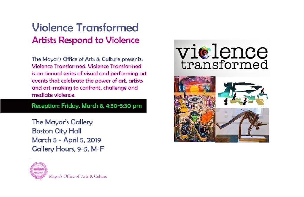 This annual exhibit at Boston City Hall art will demonstrate the power of art, artists and artmaking to address, confront, challenge, and indeed transform the impact of violence on individuals, families, communities, and nations. In 2019, we are hoping to focus, particularly, on the role of artists as activists able to address such issues as bigotry, inequality, and the abuse of power by the powerful. We asked artists to “Step Up” to the challenges posed by violence. Exhibit themes will include addressing issues of immigration, social justice and the revival of progressive American activism.